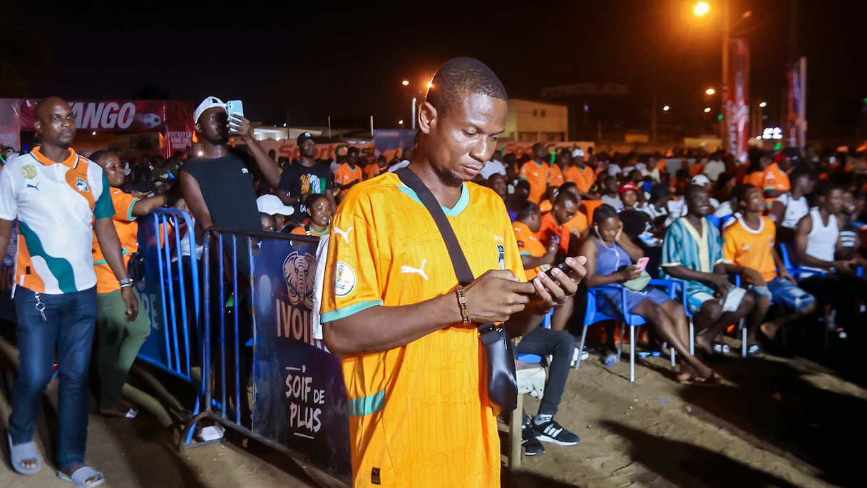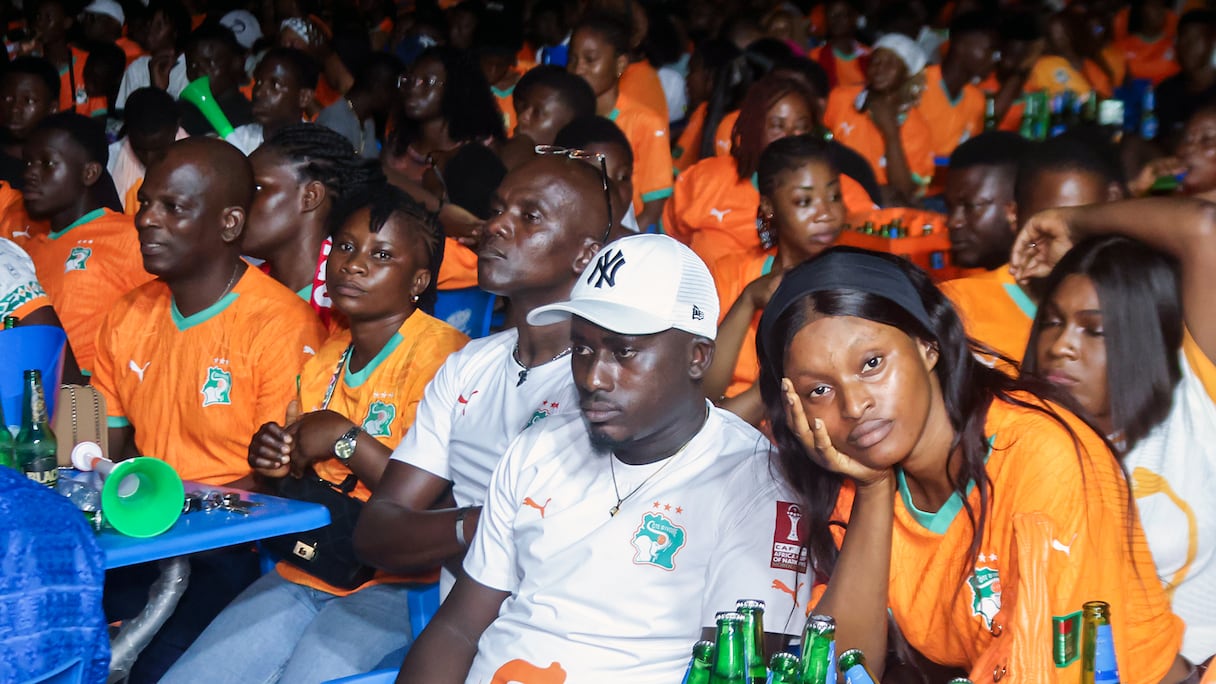 La déception chez les supporters des Éléphants de Côte d’Ivoire à Abidjan lors du match face aux Pharaons d’Egypte comptant pour les quarts de finale de la CAN 2025 au Maroc. . E. Djidja/Le360 Afrique