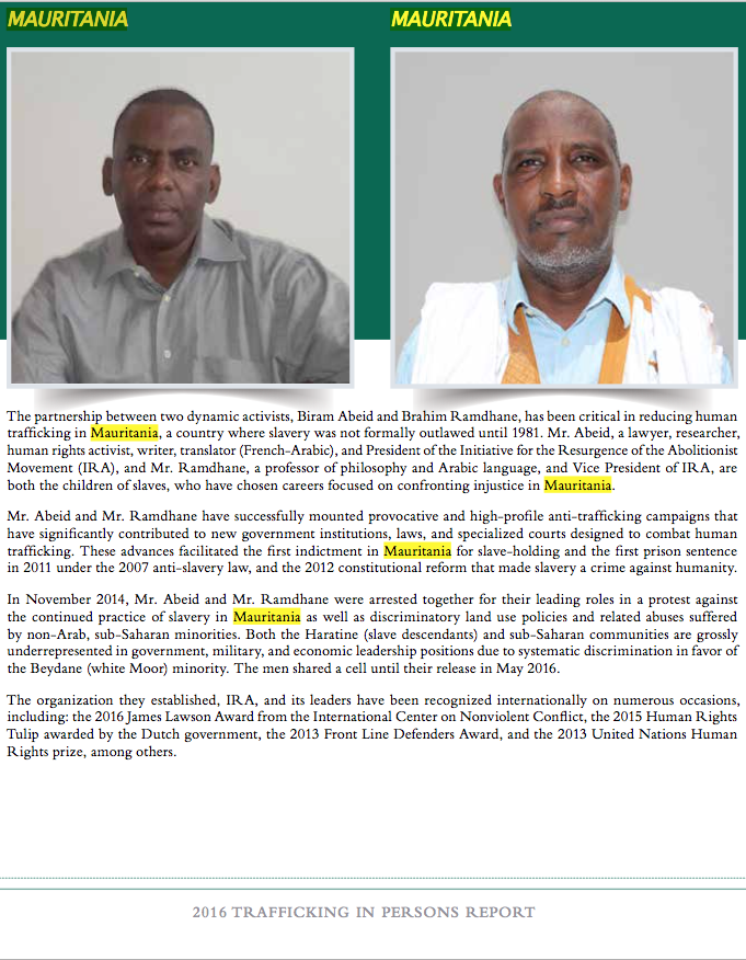 Explosif rapport US juin 2016 : la Mauritanie est Africaine et ni maghrébine ni arabe…