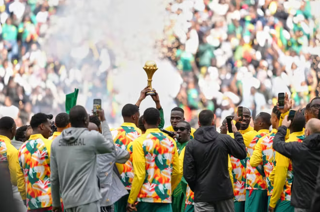 – Ils sont entrés sur la pelouse en entourant – en protégeant, presque – cette coupe dorée, comme un trésor national. Puis, portés par la voix de la superstar Youssou Ndour, les joueurs sénégalais, médaille d’or suspendue à leur cou, ont présenté, samedi 28 mars, au public du Stade de France – avant d’affronter le Pérou – le trophée de la Coupe d’Afrique des nations (CAN). Celui qu’ils ont arraché aux Marocains (1-0), le 18 janvier à Rabat, au terme d’une finale chaotique.
