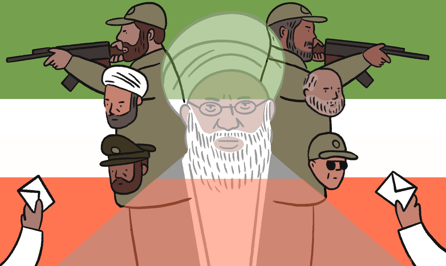 Le bureau du Guide et ses relais ont constitué l’un des principaux pôles oligarchiques, structurant la captation et la redistribution de la rente via ses fondations, monopoles et institutions clés. Ils coexistaient avec des oligarques commerciaux actifs dans les circuits de contournement des sanctions. L’ensemble de ce système est largement composé et protégé par les Gardiens de la révolution, armée idéologique en charge de la répression et de la défense de la République islamique.