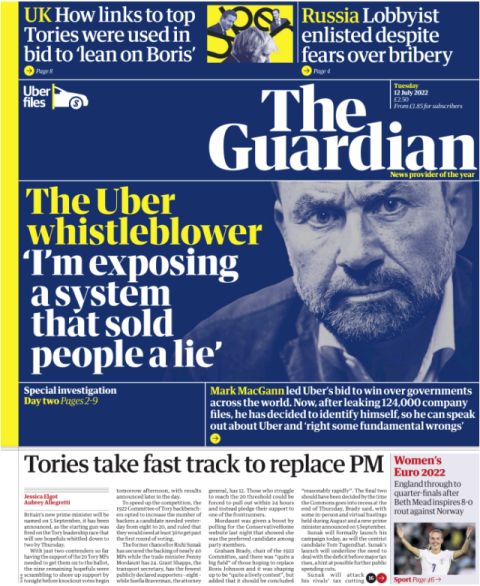 Courrier international – Près de 48 heures après la déflagration des “Ubers Files”, ces révélations sur le fonctionnement de l’implantation de la firme de chauffeurs privés dans le monde, le lanceur d’alerte, qui a fourni 124 000 documents internes au quotidien britannique The Guardian, se dévoile en une du journal.