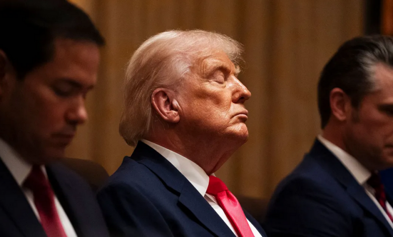 Mardi dernier, il a tenu la neuvième du genre depuis le début de son second mandat. Sous Trump, ces séances ont pris des airs de marathons de la flagornerie, au cours desquels les membres de l’équipe gouvernementale tressent à qui mieux mieux des couronnes de laurier au commandant en chef. Comme une scène d’ouverture du Roi Lear qui se rejouerait à l’infini. Mais sans Cordélia.
